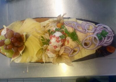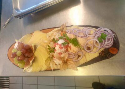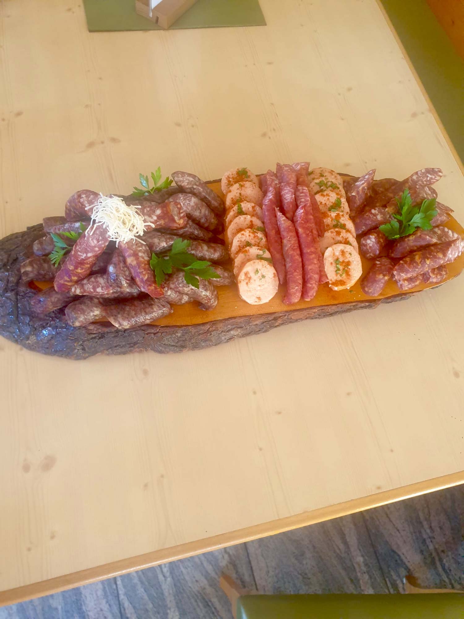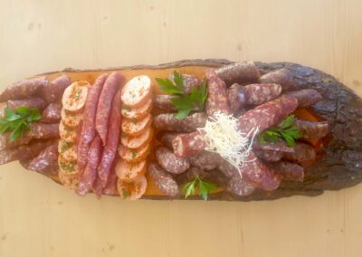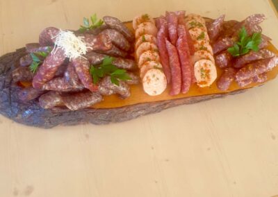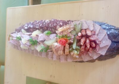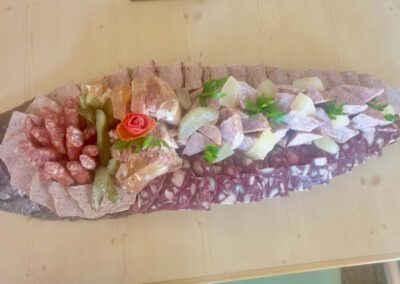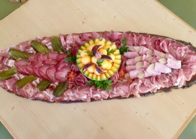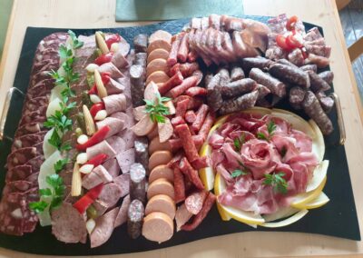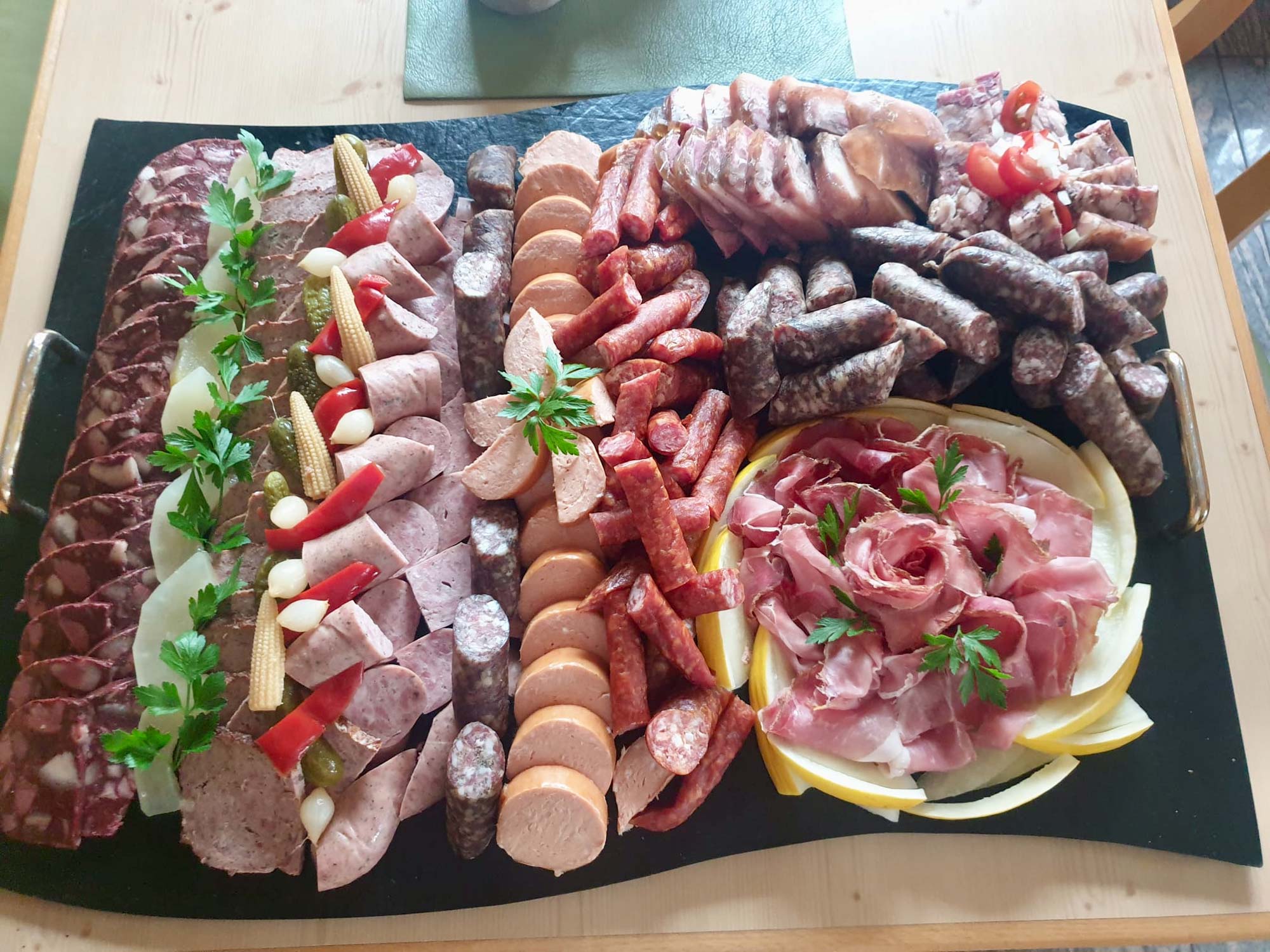 Unsere Spezialität sind Wurst- und Käseplatten, die mit viel Liebe zum Detail und handwerklichem Können zusammengestellt werden. Wir beziehen unser Fleisch von unseren eigenen Strohschweinen, die artgerecht gehalten werden und Fleisch von hervorragender Qualität liefern. Diese Qualität schmeckt man in jeder unserer Platten.