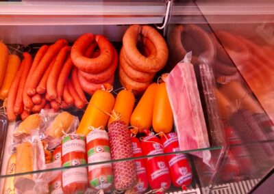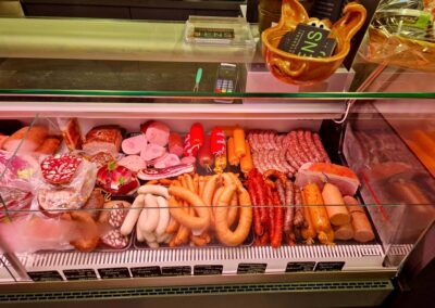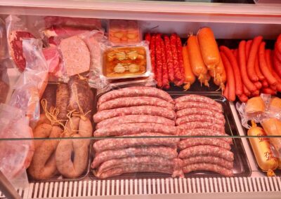 Neben frischem Fleisch bietet die Metzgerei auch eine Vielzahl von hausgemachten Wurstwaren an, die nach traditionellen Rezepten hergestellt werden. Diese Wurstspezialitäten sind bei den Kunden äußerst beliebt und werden oft in der gesamten Region geschätzt.