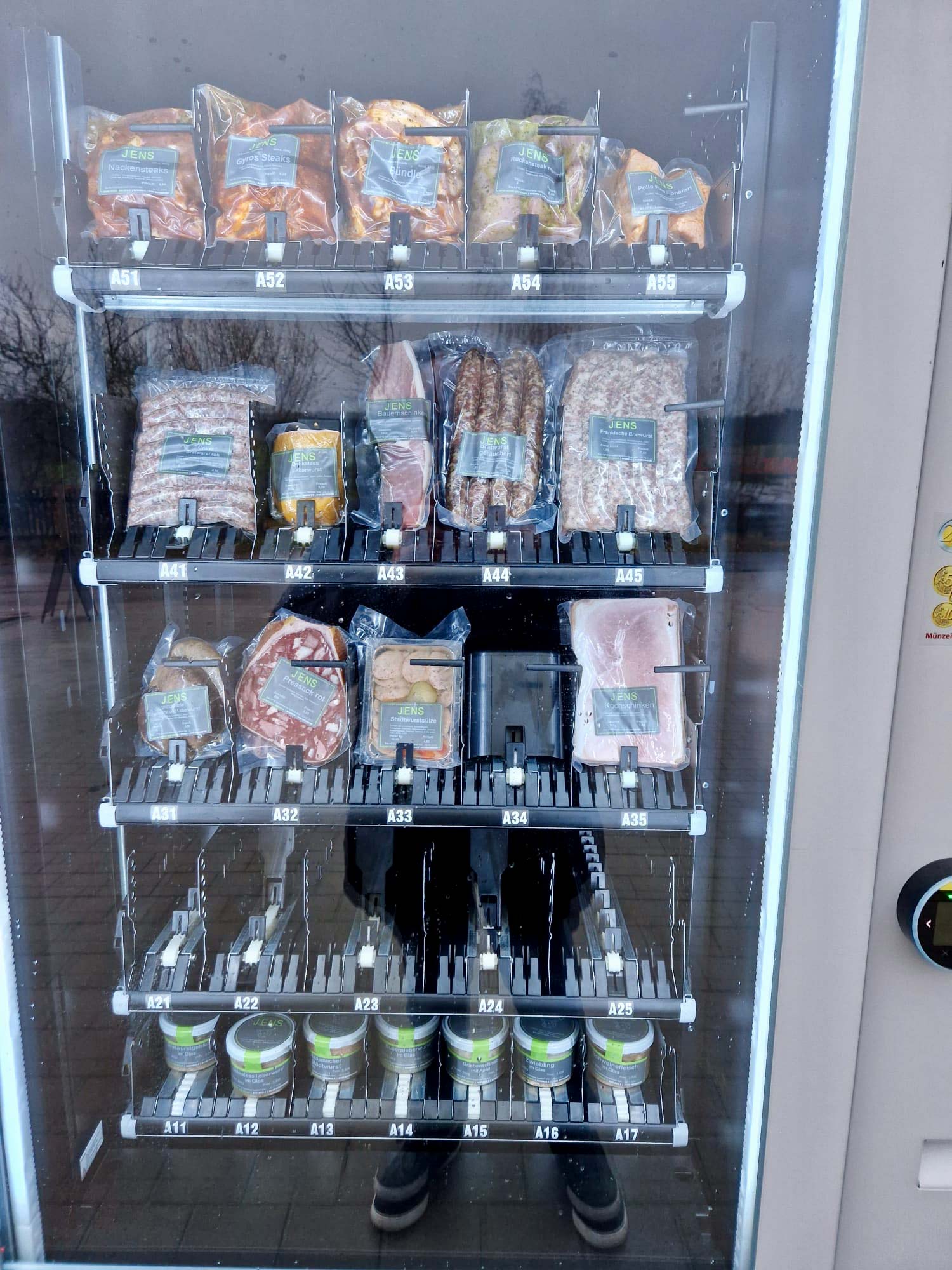 Außerhalb unserer Geschäftszeiten bieten wir Ihnen einen Automaten an, über den Sie bequem unsere Produkte erwerben können. Dieser Automat ermöglicht es Ihnen, auch außerhalb unserer regulären Öffnungszeiten Zugang zu unseren hochwertigen Metzgereiprodukten zu haben. Egal ob frische Wurstwaren, Fleischstücke oder andere Delikatessen, unser Automat steht Ihnen zur Verfügung, um Ihren kulinarischen Bedürfnissen gerecht zu werden. Wir möchten sicherstellen, dass Sie jederzeit Zugang zu unseren erstklassigen Produkten haben und Ihren Genuss nicht an bestimmte Uhrzeiten gebunden ist.