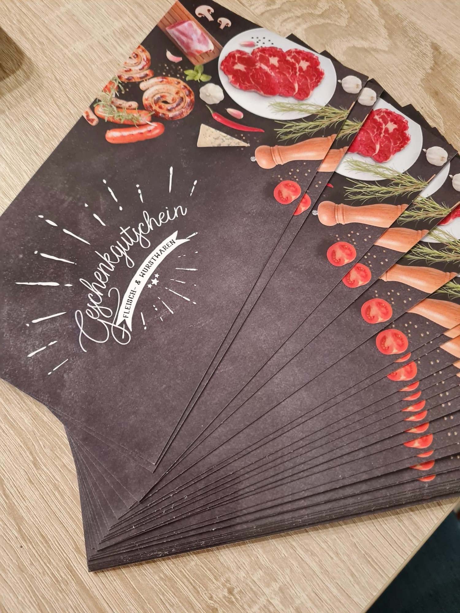 Verschenken Sie Genuss und machen Sie Ihren Lieben eine Freude mit unseren Geschenkgutscheinen von der Hofmetzgerei Jens Braun. Es gibt keinen besseren Weg, die Liebe zum guten Essen zu teilen und schöne Momente zu schaffen.